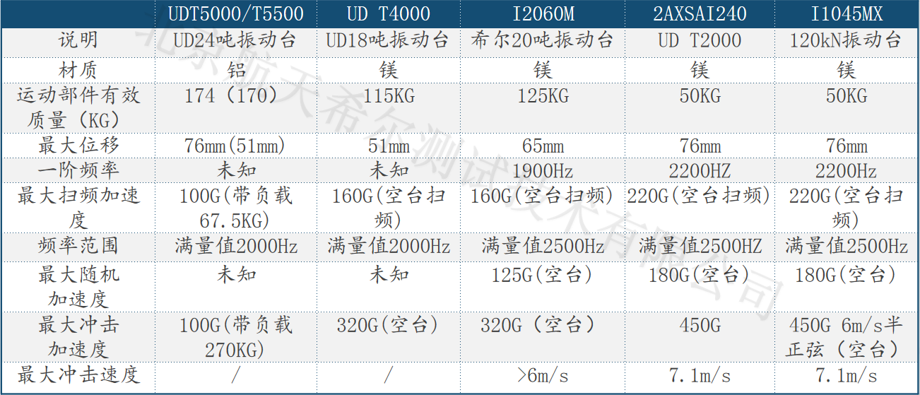 五、國(guó)內(nèi)外感應(yīng)式振動(dòng)臺(tái)性能對(duì)比: