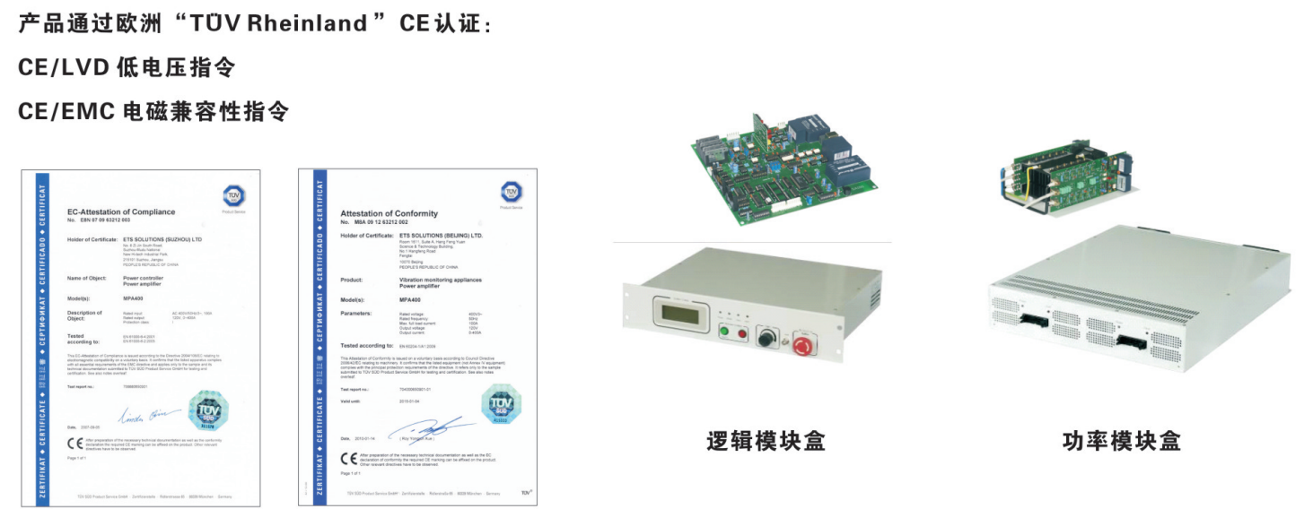 MPA系列功率放大器是采用正弦脈沖寬度調(diào)制技術(shù)的數(shù)字式功率放大器。其工作原理是:利用MOSFET場效應(yīng)管的高頻開關(guān)能力,將控制儀輸入的低電壓信號通過數(shù)字電路進(jìn)行放大并還原成原信號,然后將其輸出至電動振動臺的動圈線路,推動電動振動臺臺面運動。數(shù)字式功率放大器的主要組成部分:邏輯模塊盒,功放模塊盒,保護(hù)電路,勵磁電源部分和電柜。 MPA功率放大器的輸出范圍為1kVA~1000kVA。系統(tǒng)技術(shù)指標(biāo)完全適用于現(xiàn)有的或新的風(fēng)冷或水冷型電動振動臺??捎糜谔鎿Q其他廠商同型號的功率放大器。 MPA 系列功率放大器是采用新技術(shù)設(shè)計的寬頻帶數(shù)字開關(guān)功率放大器,主要有邏輯模塊、功率模塊、勵磁電源模塊等組成。MPA 系列功率放大器功率器件均采用美國知名公司供貨,質(zhì)量有保證。 MPA系列功率放大器產(chǎn)品通過歐洲“TUV Rheinland”CE認(rèn)證.